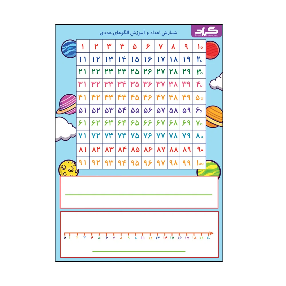لمینت دو طرفه انتشارات گراد دارای جداول و الگوهای کاربردی دانش آموزان جمله یک محور اعداد، جدول اعداد 1 تا 100، جدول ارزش مکانی یکی و ده‌تایی، تساوی جمع و تفریق و تصویر یک ساعت بدون عقربه و دارای ارقام ساعت‌شمار و دقیقه ‌شمار برای آموزش ساعت وجود دارد. با استفاده از این تخته، تجربه تمرین ریاضی به یک تجربه شیرین تبدیل می‌شود .