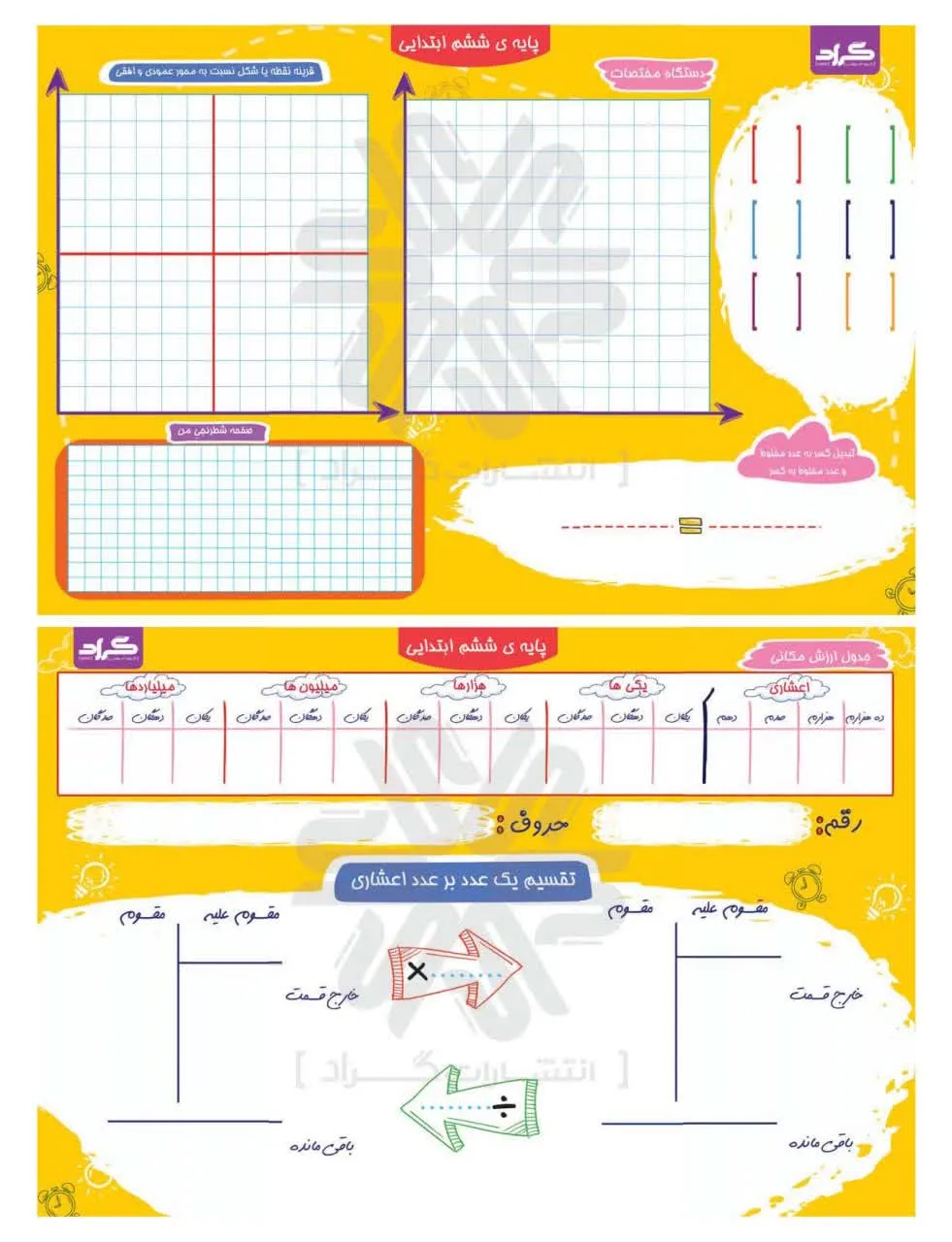 لمینت دو طرفه انتشارات گراد دارای جداول و الگوهای کاربردی از جمله بخش محاسبه حجم و مساحت ، تبدیل کسر و اعداد اعشار ، نمودار ها ، جدول ارزش مکانی  و… است با استفاده از این تخته، تجربه تمرین ریاضی به یک تجربه شیرین تبدیل می‌شود .